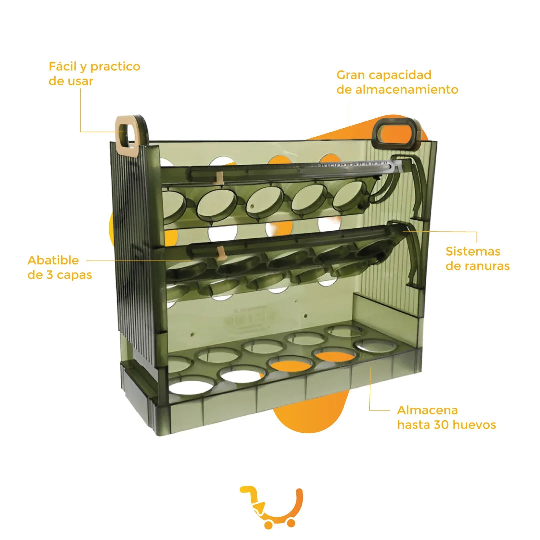 - Diseño de doble nivel: Permite un almacenamiento eficiente y mantiene los huevos organizados.