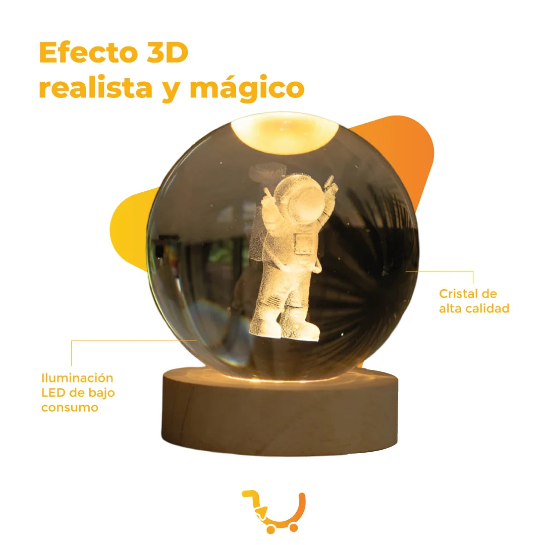 - Lámpara de cristal esférica con diseño de Astronauta, iluminada internamente para un efecto 3D realista y mágico.