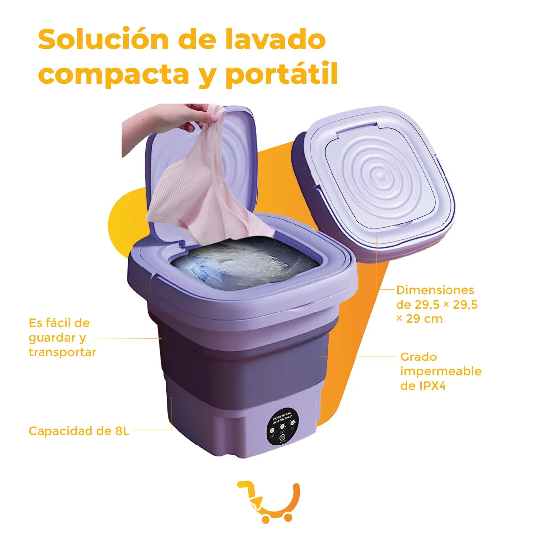 - Mini lavadora portátil y plegable, ideal para lavar ropa ligera como ropa interior, calcetines o prendas delicadas.