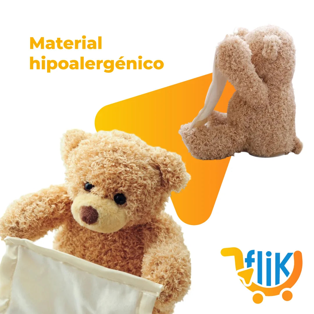 - Incluye una manta integrada con la que tu pequeño juega a las escondidas con su peluche oso.